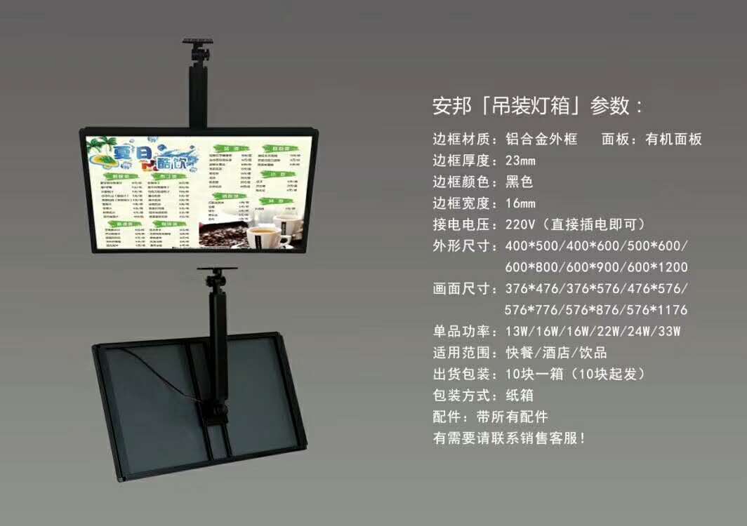 產(chǎn)品用途超薄節(jié)能燈箱主要適用范圍:廣告媒體、墻面裝飾宣傳、室內外指示牌……